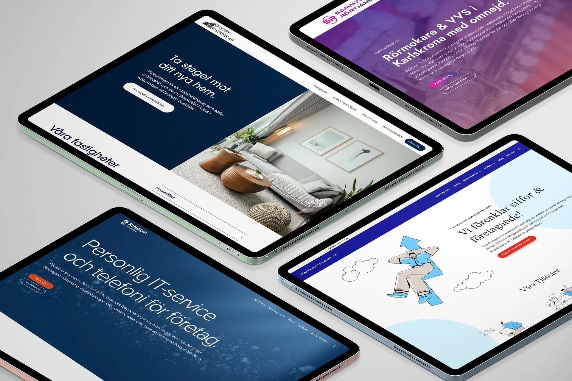 Vi tar fram hemsidor för företag som vill ha en tydlig, lättanvänd och långsiktigt hållbar webb. Fokus ligger på struktur, innehåll och design som gör det enkelt för besökaren att förstå vad ni erbjuder – och att ta kontakt.